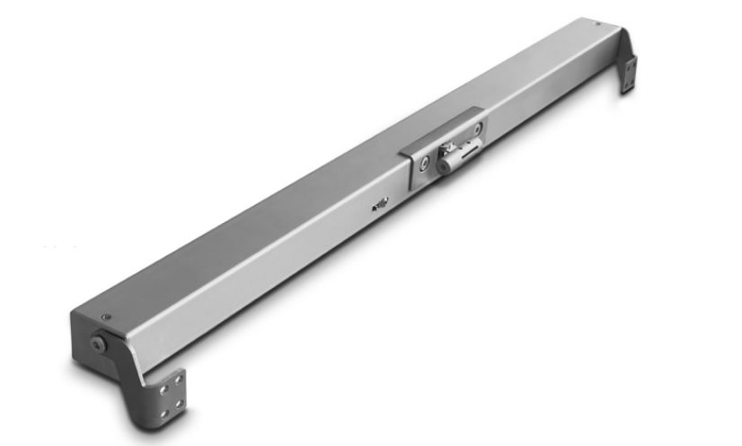 Electric actuator Alu forme model AFC160 RWA with 2 double-link chains, in an elegant die-cast aluminium profile, complete with brackets and accessories for bottom hung windows outward opening for smoke evacuation application. Operation at 24V DC. Max. thrust force 300N. Stroke 360 - 600 mm. Electronic end of stroke in closing by current absorption control.